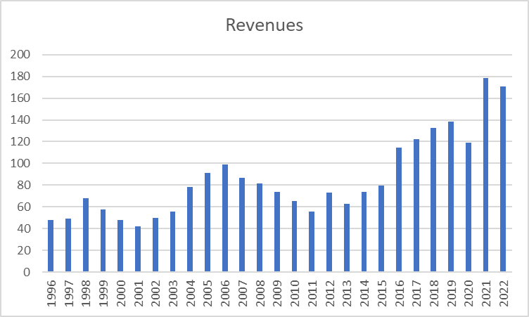 However, starting from 2016, the company experienced an upward trend in its revenues, accompanied by increased profitability. It is important to note that earnings still exhibited volatility due to the presence of operating leverage, which can magnify the impact of changes in revenue on profitability