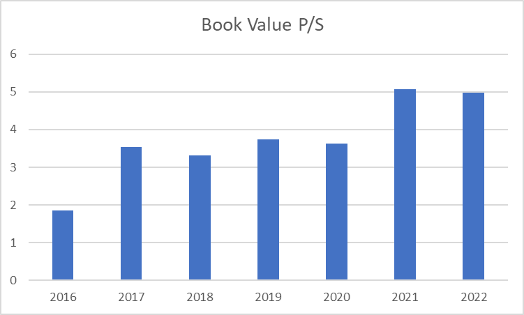 The management is not only competent but also adept at execution. The company is under the ownership and operation of CEO John Villano, who holds a substantial portion of shares. It’s evident that the company’s book value per share has experienced substantial growth since its inception, even in the face of considerable dilution.