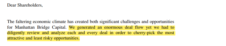 Typically, more business opportunities arise during challenging economic periods. An excerpt from Manhattan Bridge Capital’s 2008 Letter to Shareholders highlights that in tough times, developers often opt for loans at less favorable rates, leading to an expansion of the loan pipeline for hard money lenders. However, such periods also come with increased risk as borrowers may exhibit higher levels of financial instability. As emphasized by Sachem’s management, careful selection of borrowers becomes crucial in such environments.