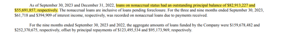 The credit quality of the portfolio remains strong, with approximately 71% of customers boasting a credit rating of 701 or above. However, it’s worth noting that credit scores have limited significance in hard money lending, given the already high interest rates charged in this lending model.