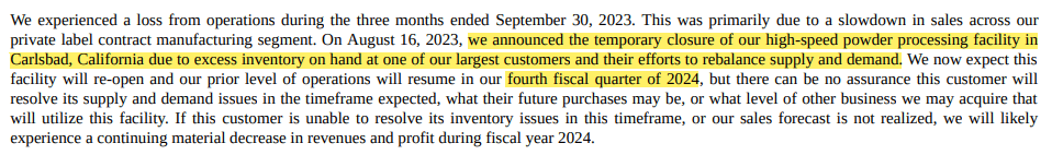 In Q1 2024, the company incurred an operational loss due to challenging market conditions. The following is an excerpt from their 10-Q: