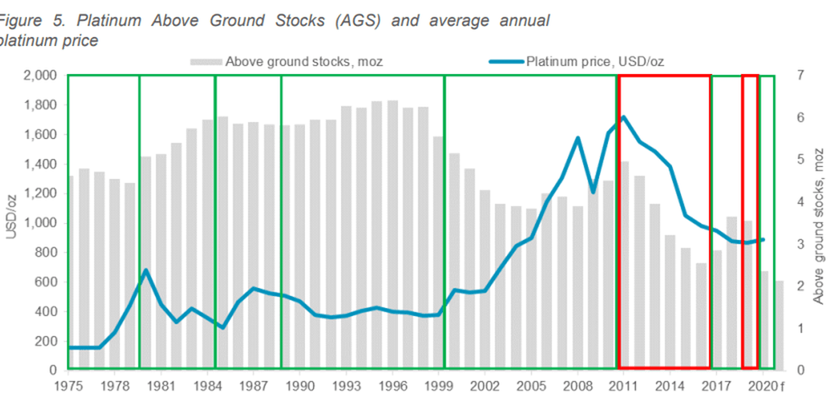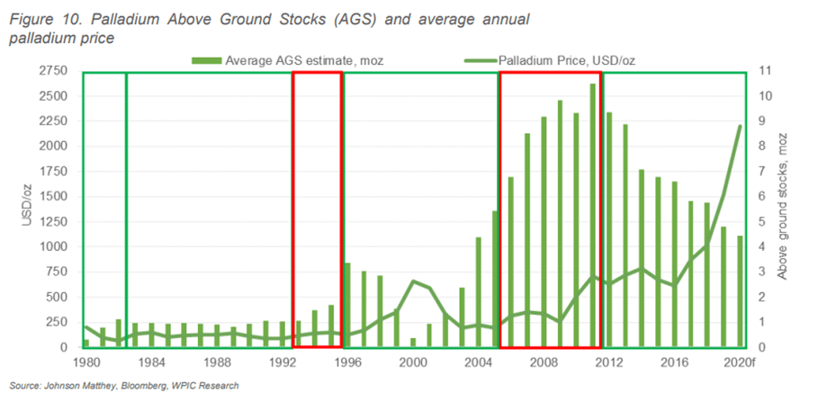 For instance, from 1996 to 2001, palladium traded at a premium to platinum. Conversely, from 2002 to 2017, platinum traded at a premium to palladium as Russia kept the palladium market adequately supplied, while platinum experienced persistent deficits.