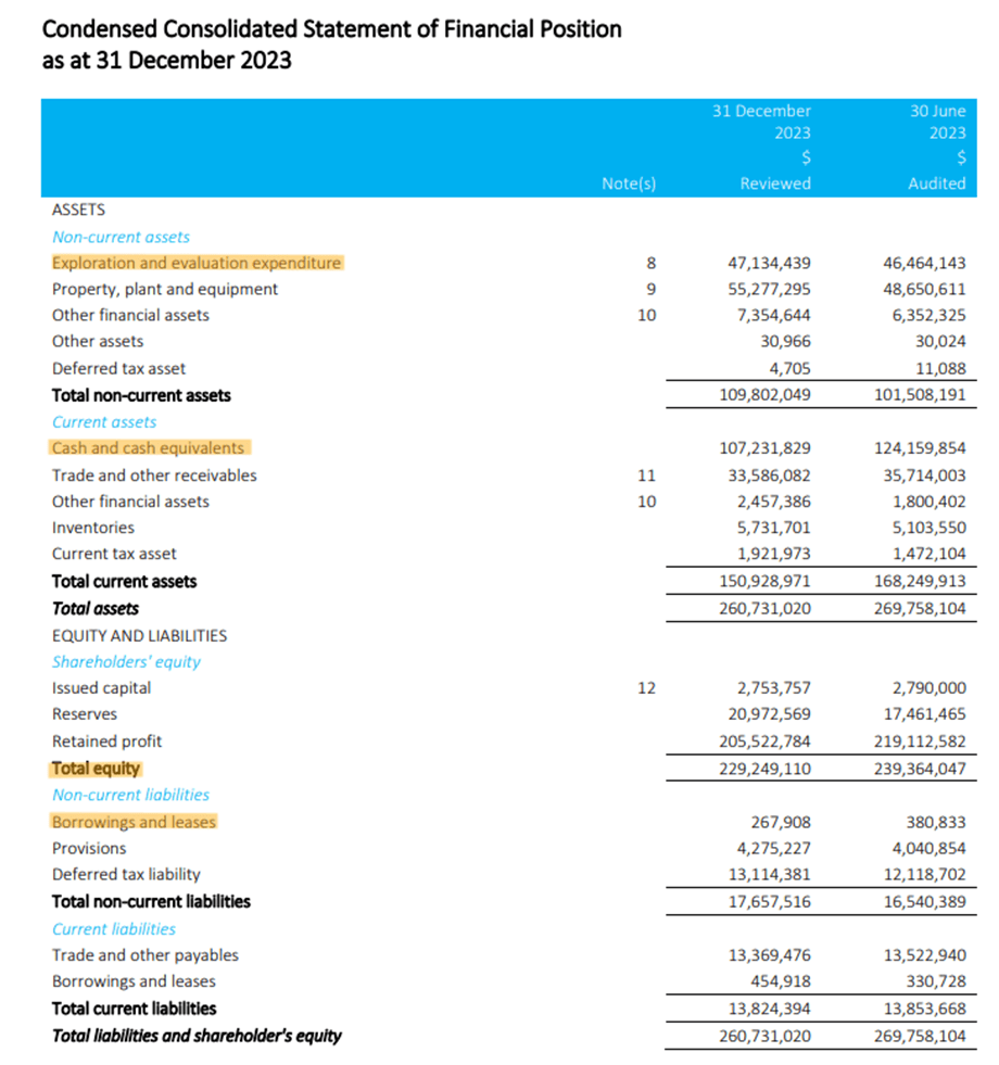 As observed, the company does not report any intangibles on its balance sheet. However, it’s worth noting that exploration and evaluation expenditures have been capitalized. To gain clarity on the origin of this value, let’s delve into the corresponding balance sheet note.