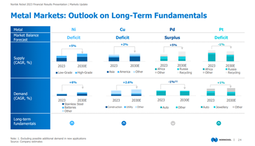 Lately, there has been a surge in pessimism regarding the future prospects of PGMs, fueled by steep declines in prices. However, it’s crucial to delve into the intricacies of supply and demand dynamics to gain a clearer picture of future pricing trends. It’s worth noting that commodity prices, especially in the short term, often reflect a blend of economic factors and sentiment rather than pure supply and demand dynamics.