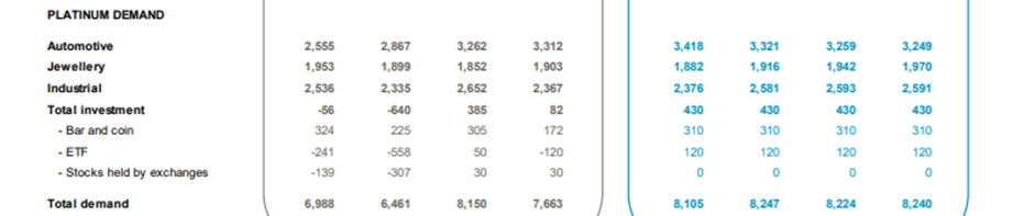However, it’s essential to recognize that combustion engines will remain relevant in the near term. In fact, ICE vehicles are expected to incorporate higher PGM loadings due to stricter emission standards. Additionally, PGMs play a significant role in the hydrogen revolution and fuel cell technology, although these applications are currently not factored into pricing due to insufficient evidence of their development. Lastly, like all precious metals, PGMs also attract investment demand, driven by their rarity.