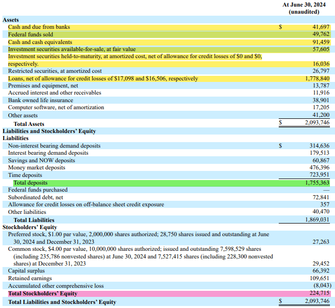 A solid community bank, currently trading at 0.6x its Book Value, presents an attractive investment opportunity with Return on Equity (ROE) in line with the industry average. Since 2016, the bank has demonstrated robust growth, increasing deposits per share by 10.3% and book value per share by 11.2%. The bank is financially strong, with 78% of its deposits categorized as core, providing a stable funding base.