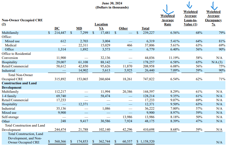 If you’re still concerned about the more speculative portion of the portfolio, consider the interest rates charged (especially on construction loans), the low Loan-to-Value (LTV) ratios that provide a cushion in the event of a property price decline, and the generally robust occupancy levels.