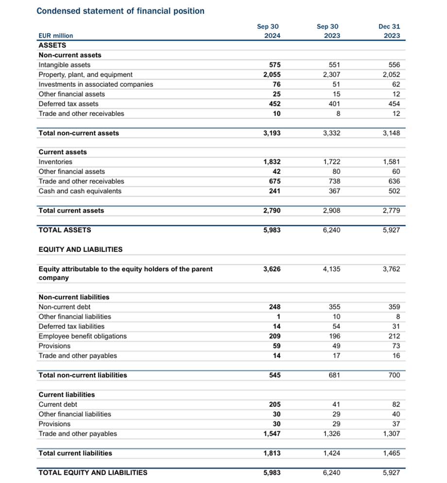 Year-to-date, the company has delivered €190 million in Adjusted EBITDA (excluding the €60 million impact on EBITDA caused by a strike in Finland during H1 2024) and recorded a negative free cash flow (FCF) of around €40 million. This is not surprising given the challenging environment. The company does not anticipate any improvements in Q4 2024.