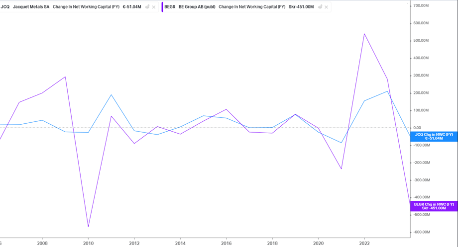 Now, bearing this in mind, notice that independent distributors handle roughly 20-25% of the stainless steel market volume globally (this figure is from worldstainless.org, but I recall reading somewhere that it’s more in the 40% range). These distributors are often large customers of big producers and focus on delivering from mills to smaller service centers or end-users that cannot directly do business with the big producers. They act exactly as I have described above, and they are responsible for exacerbating the already violent cycles of the industry. If you don’t believe me, let me show you two examples of prominent publicly listed distributors: BE Group and Jacquet Metals.