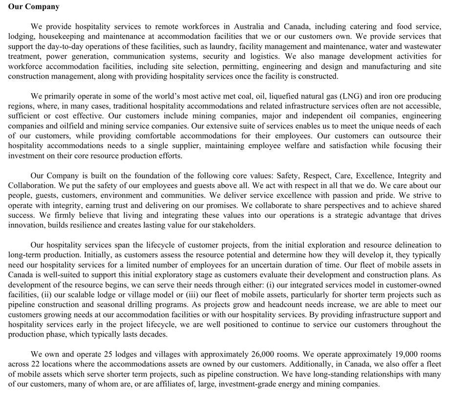 On the company’s history: It was founded in 1977 as a rental company of modular housing for energy companies supporting drilling rig crews in the Western Canadian Sedimentary Basin. Over the next decade, they acquired a food service company, which enabled them to offer a wider range of services.