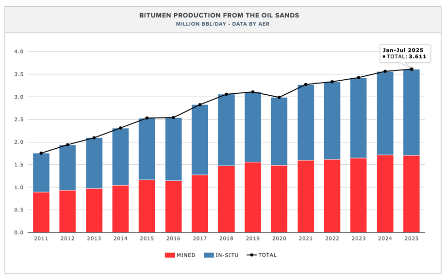 The Canadian oil sands continue to grow, mined as well as in-situ oil production, and are setting new records.