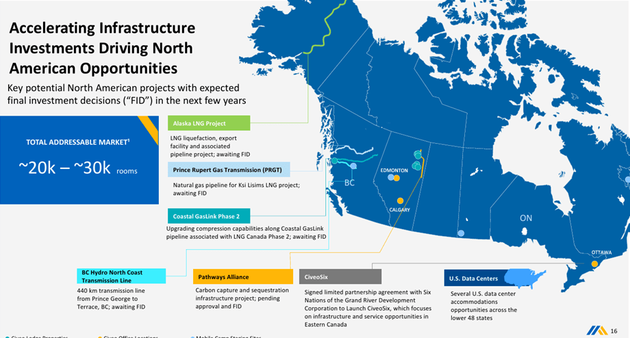 - Kearl expansion, where Imperial continues capacity growth toward 300 kbd+ through upgrades and debottlenecking. The impact here is high, since it is near the Wapasu Creek Lodge, which also happens to be Civeo’s largest lodge in Canada.