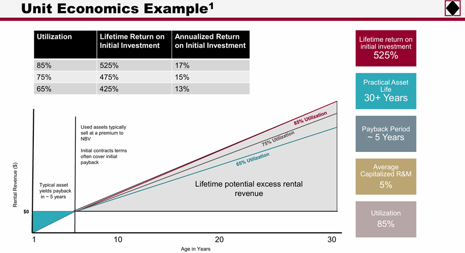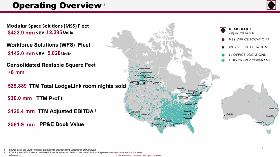 In total, Black Diamond has 18,123 units, with total rental revenues of around $150 million (Q1 TTM) and a book value of $581.9 million.