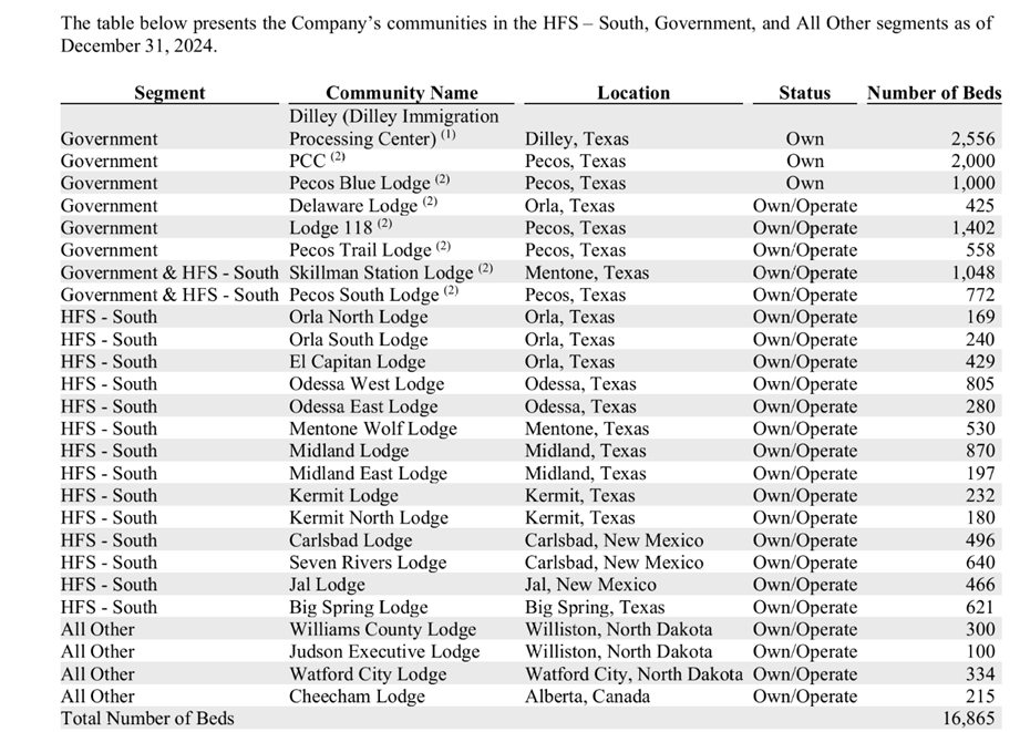 Now, if Black Diamond wasn’t enough, here’s another example: Target Hospitality. Like Black Diamond, TH provides accommodation services to the oil, gas, energy, and government sectors. It works with the U.S. government (especially immigration-related contracts, often 2 beds:1 room), and for oil and mining companies (which are often 1 bed:1 room).