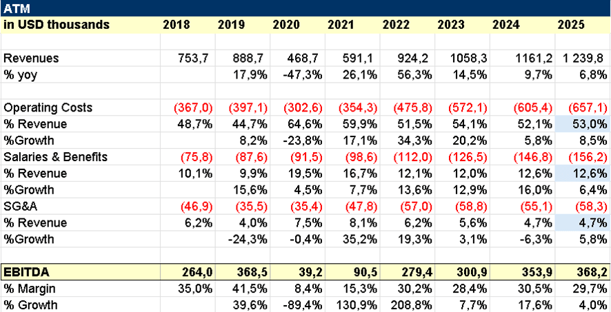 Valuing this segment is tricky. I wouldn’t pay 12x+ EV/EBITDA, but 5x feels too low. A reasonable middle ground is 8x, implying an EV of €1.9B. Combined with the ATM (6x) and Epay (7x) segments, the sum-of-the-parts EV is around €5.1B, versus the current market EV of €3.27B, signaling a ~36% discount to fair value.